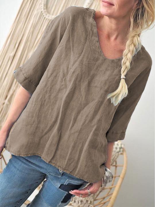 Previous ImageNext Image rose Round neck w/shirt slight~layered hem and 3/4~elbow sleeves. Round neck w/shirt slight~layered hem and 3/4~elbow sleeves.