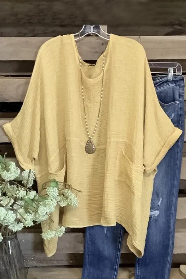 Round Neck Bat Sleeve Pocket T-shirt