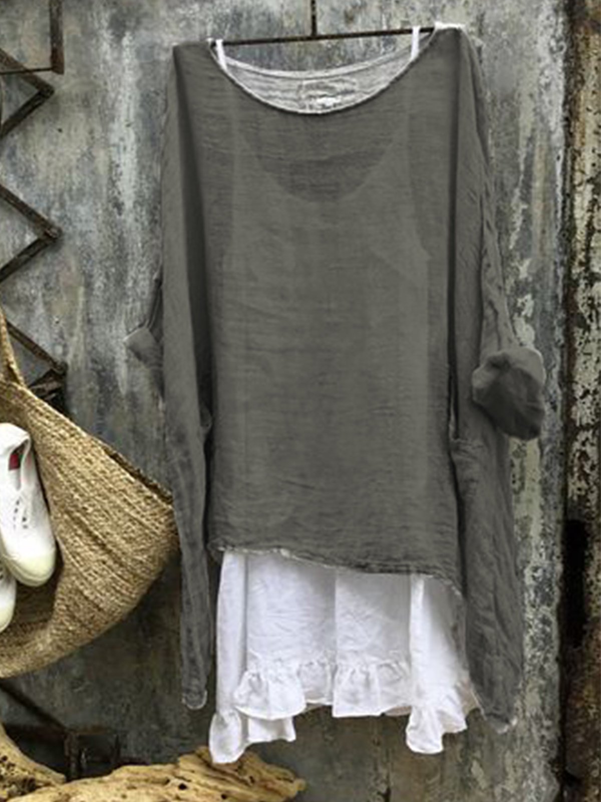 Previous ImageNext Image sarahia rose shirt 01 Crinkle over shirt w/layered hem and 3/4~elbow sleeves. Crinkle over shirt w/layered hem and 3/4~elbow sleeves.